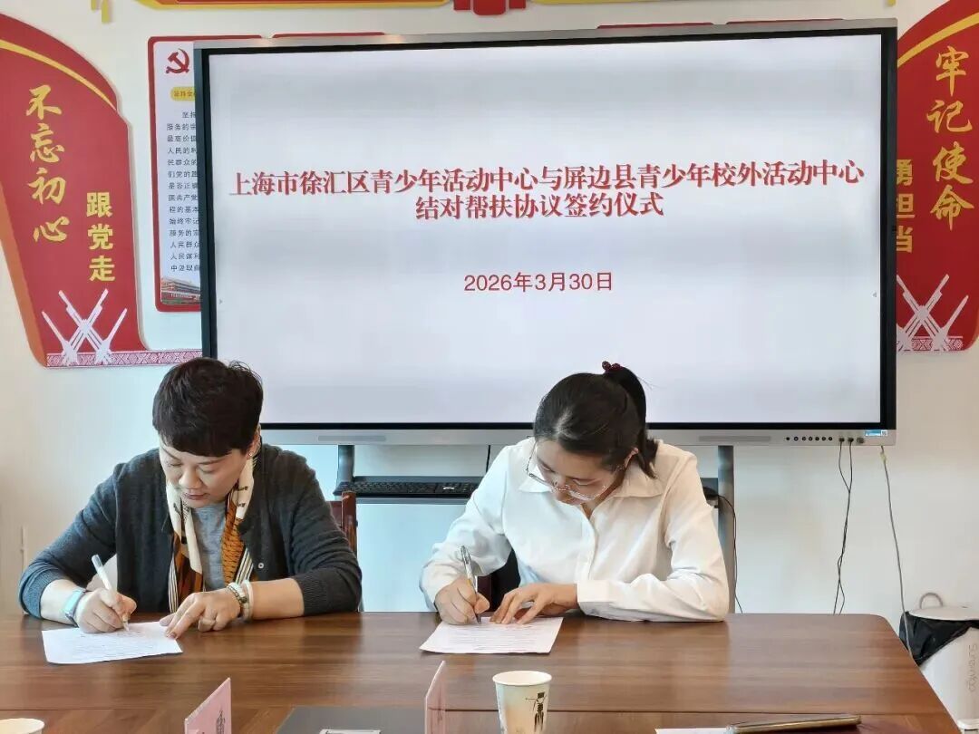 3月30日,上海市徐汇区青少年活动中心钱文华主任一行远赴屏边,与屏边县青少年校外活动中心举行结对帮扶座谈会暨签约仪式,屏边县委常委、副县长陈佳毅出席仪式并见证签约,双方相关负责人参加活动。此次签约是落实东西部协作部署、深化沪滇教育帮扶的重要举措。
