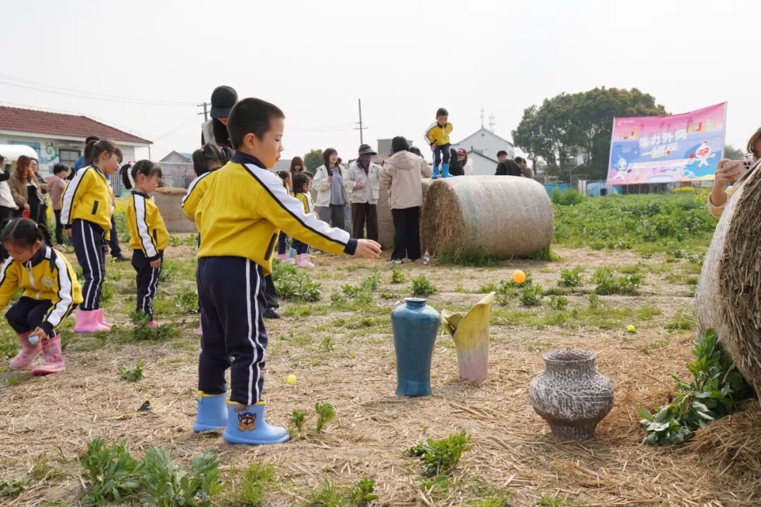 除了激烈的比拼,稻草颠球接力赛、乒乓球投壶等趣味项目也吸引不少参与者跃跃欲试。不仅大人们玩得尽兴,来自望新幼儿园的小朋友们同样参与感十足。比赛结束后,孩子们在稻田旁手绘陶艺作品,用画笔记录下这份春日里的美好回忆。小朋友高琳雅兴奋地展示着自己的画作,笑着说:“今天我玩得特别开心!我画了杯子,杯子上面有很多乒乓球!”