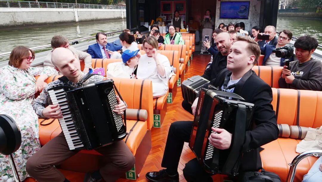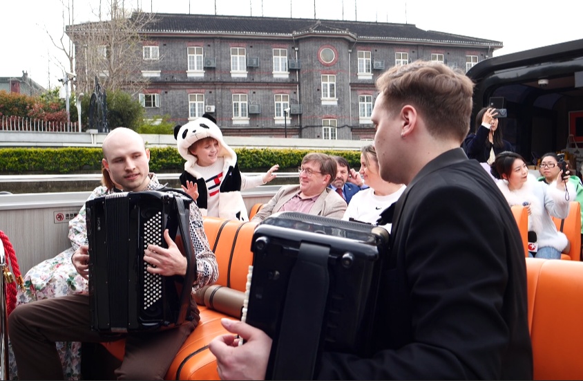 “这种感觉太棒了!”一曲奏完,来自俄罗斯的手风琴演奏家康斯坦丁·里亚宾惊喜地说道,“一边欣赏着河边的美景,一边演奏,不仅是一次放松身心的享受,看到岸边的行人停下来聆听我们的乐声,也让我感到非常开心。”