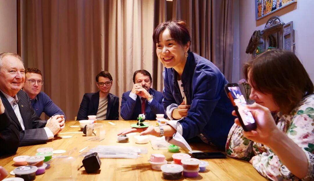 大家在老师的指导下专注创作,原本普通的面团在他们指尖慢慢成型,最终汇聚成一只只憨态可掬的大熊猫面塑,看着自己亲手完成的作品,大家脸上满是惊喜与赞叹。“这个面塑手工体验太有趣了,我非常喜欢。”来自俄罗斯的巴扬演奏家塔季扬娜·利祖诺娃感慨道,这是她第一次接触中国的传统文化,就深深地被吸引了。
