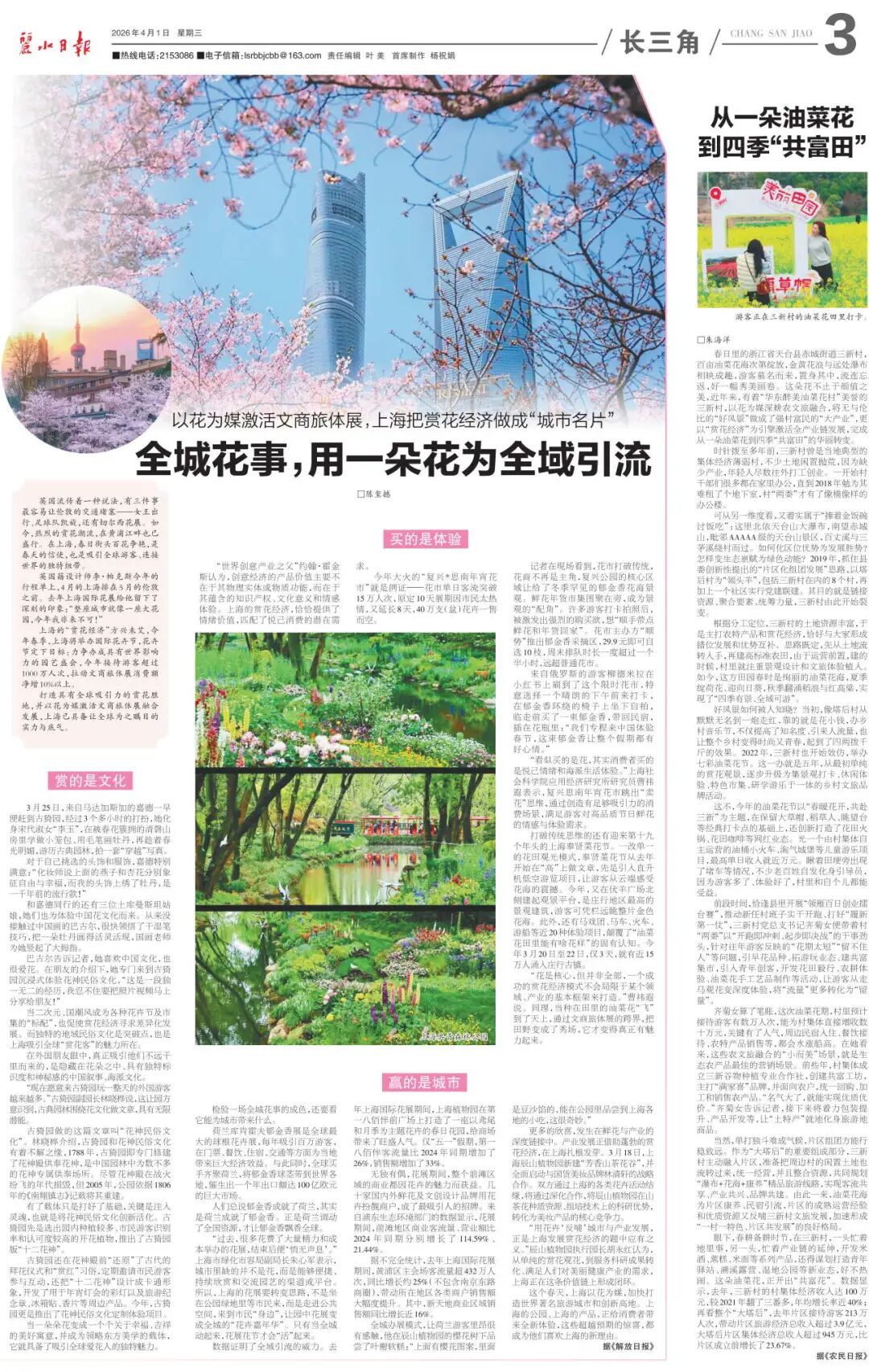 “世界创意产业之父”约翰·霍金斯认为,创意经济的产品价值主要不在于其物理实体或物质功能,而在于其蕴含的知识产权、文化意义和情感体验。上海的赏花经济,恰恰提供了情绪价值,匹配了悦己消费的潜在需求。