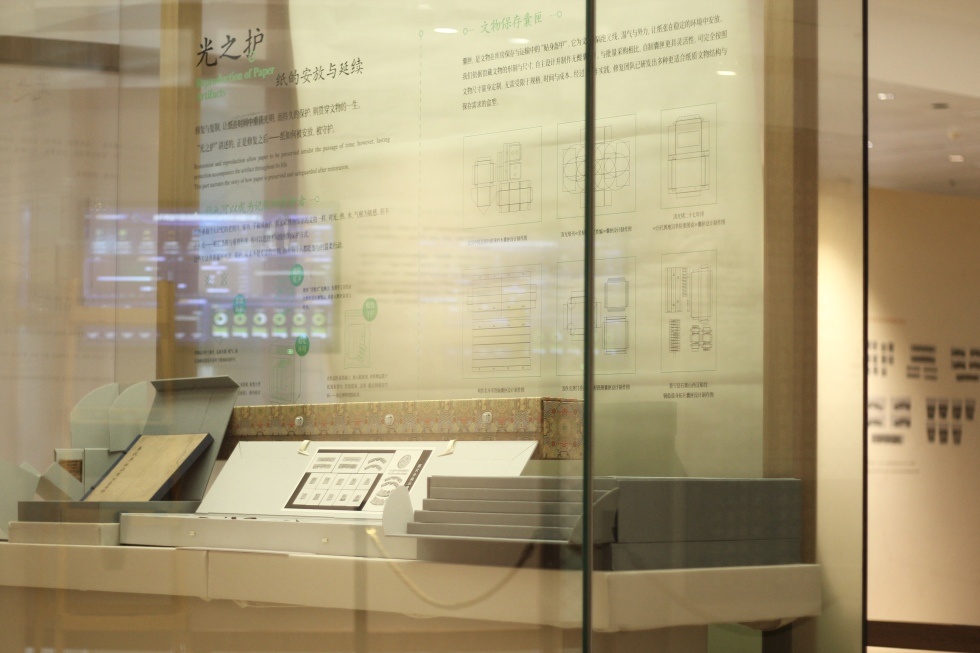 “纸水相成”聚焦修复的物质基础,展示修复师常用的各类手工纸样及从旧裱件中揭取保存的覆背纸,揭示水在造成损伤与促成修复中的双重作用;“潮起还生”通过案例的对照,阐释“最小干预”“可逆性”等核心修复原则,并引发关于历史痕迹与当代介入关系的思考;“纸之重光”延伸至修复之后的综合保护,介绍复制技术、无酸囊匣、微环境调控等手段,并呼应公众对老照片、家书等日常纸质物品的保护需求。