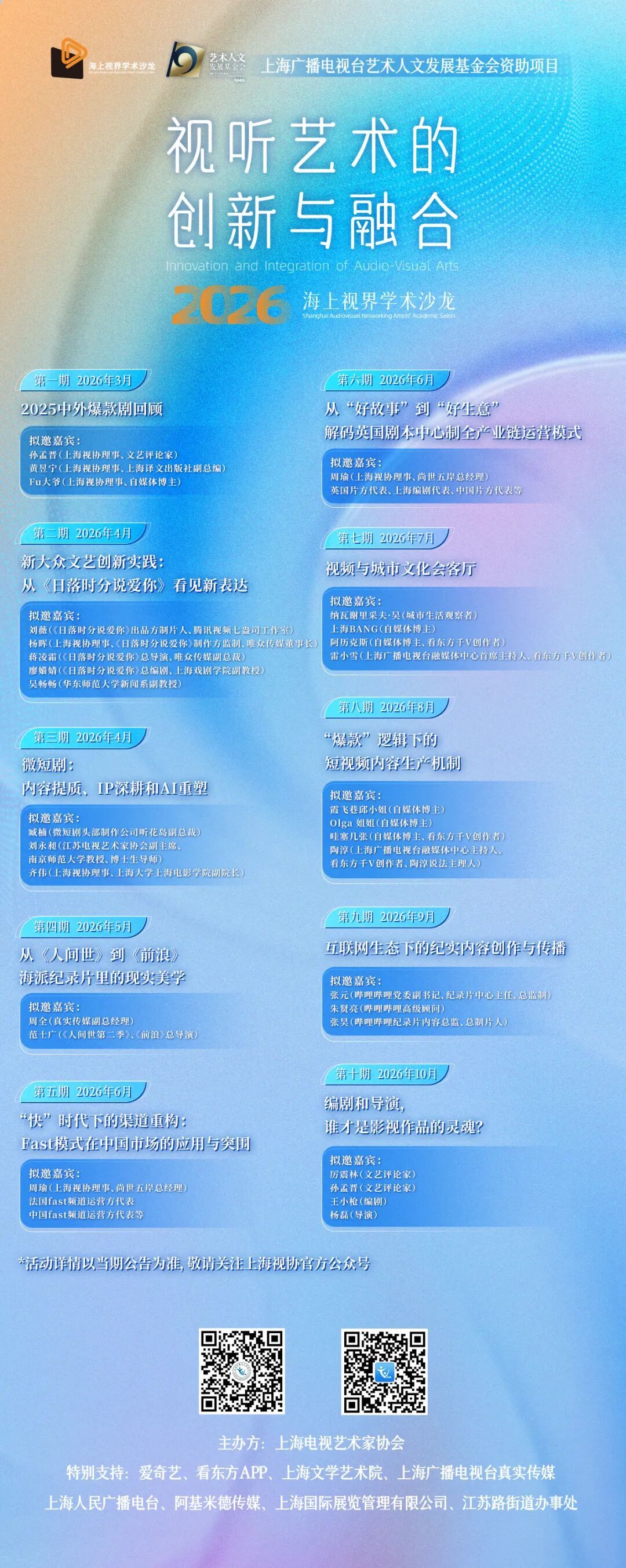 2026年3月29日下午,由上海电视艺术家协会主办的“视听艺术的创新与融合”2026海上视界学术沙龙第一期——2025中外爆款剧回顾在愚园路电台举行。