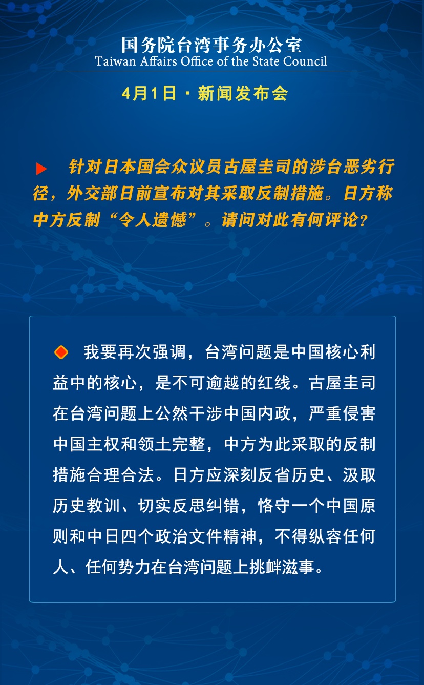 国台办:日方不得纵容任何人、任何势力在台湾问题上挑衅滋事