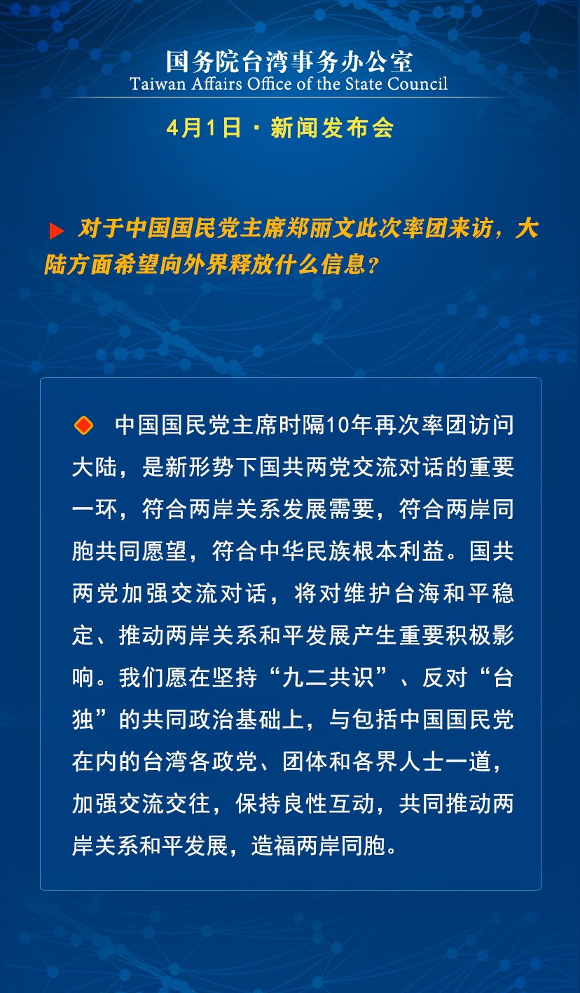 国台办:国共两党加强交流对话,将对维护台海和平稳定、推动两岸关系和平发展产生重要积极影响