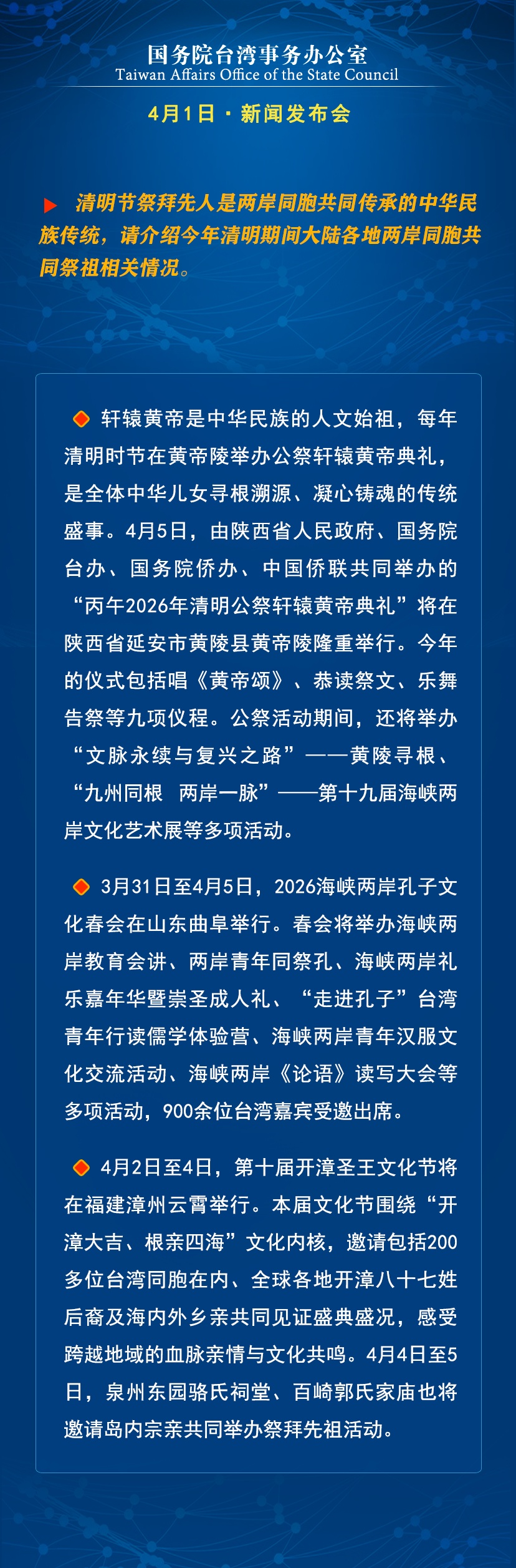 国台办:清明祭祖是中华儿女寻根溯源、凝心铸魂的传统盛事