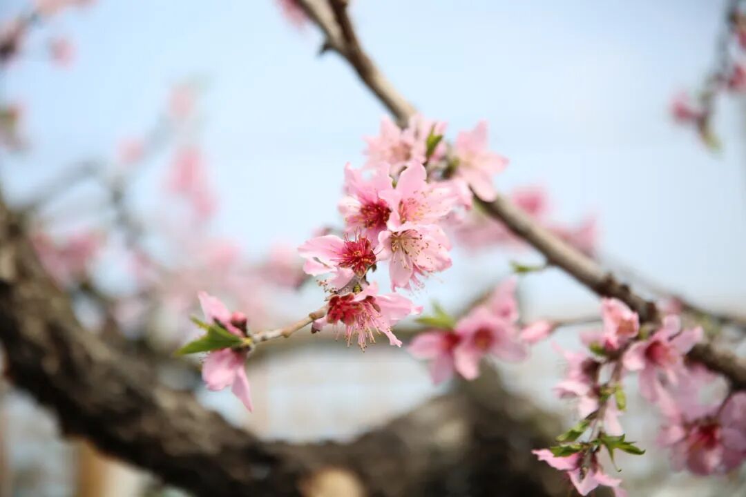 把每一朵粉桃都照得通透