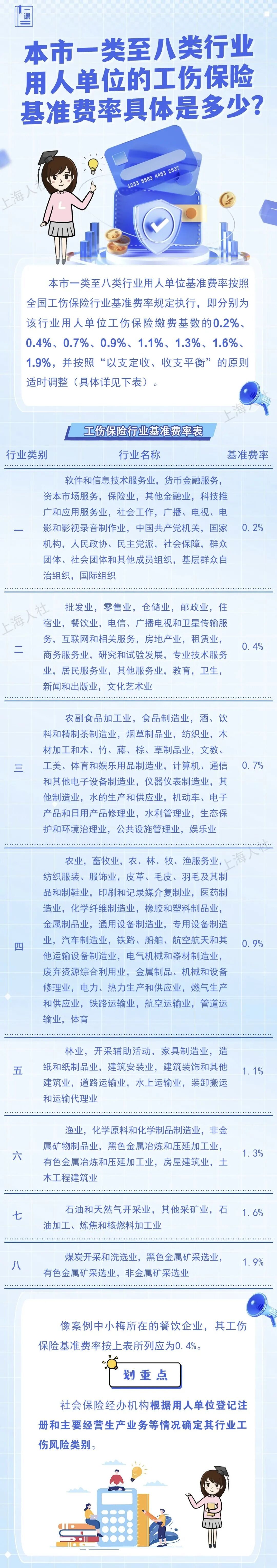 本市一类至八类行业用人单位的工伤保险基准费率具体是多少?