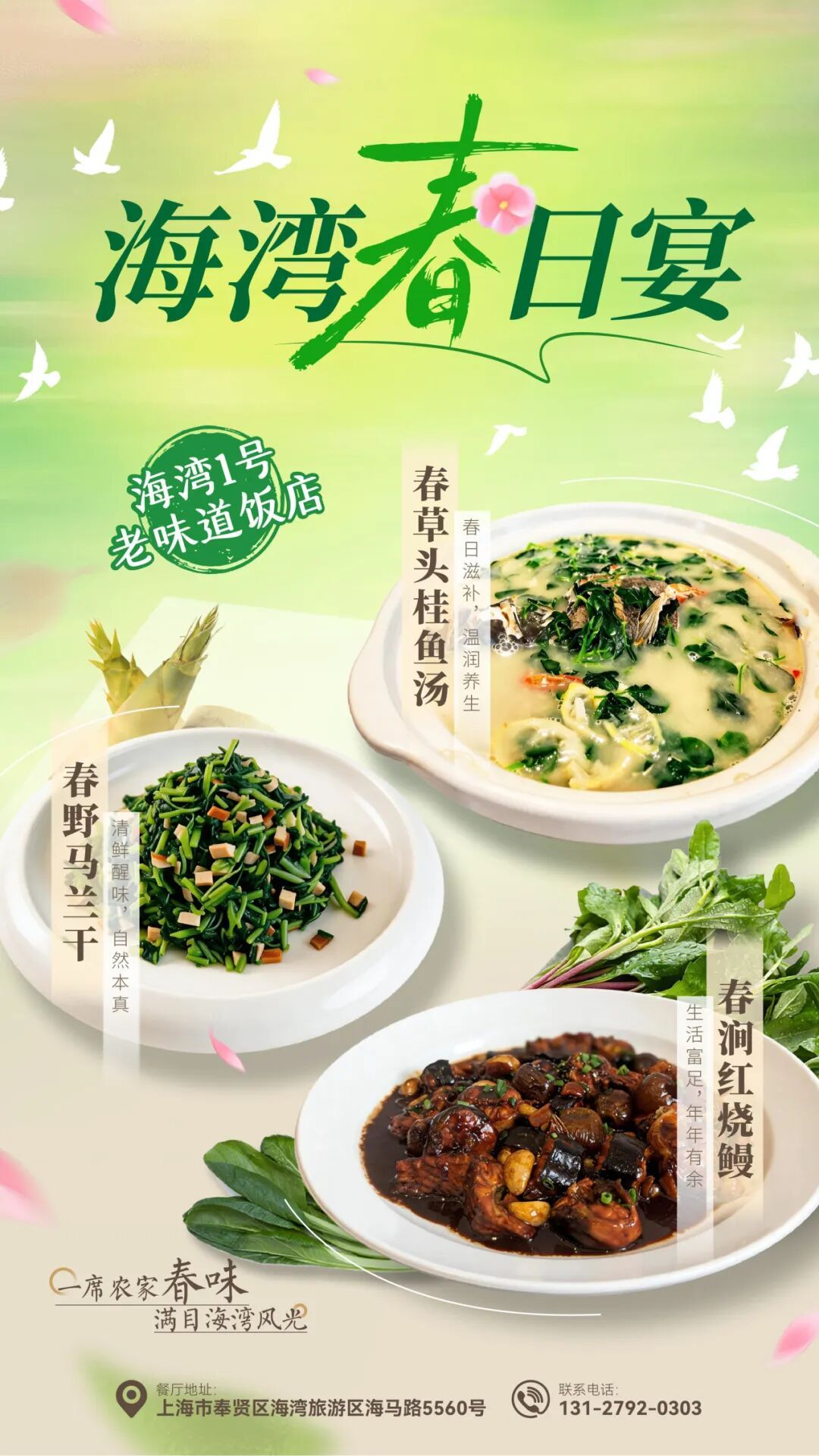 海湾1号老味道饭店,专烹地道海湾农家菜,藏着最淳朴的春日乡土烟火。本次春日宴精心打造「海湾春韵・十二味」6人餐,甄选田间野菜、河湖鲜物与农家土货,打造十二道春日家常菜,顺应时节简单烹制,不繁复不雕琢,朴素见匠心。一口田间春色,一口河湖鲜甜,聚山海之鲜,品农家之醇,在家常滋味里邂逅海湾春日的淳朴美好。