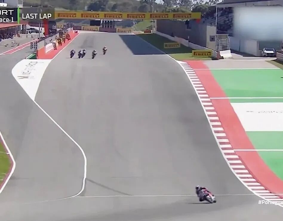 北京时间3月28日,在世界超级摩托车锦标赛(WSBK)葡萄牙站SSP组别的比赛第一回合中,法国车手驾驶张雪机车的820RR-RS赛车以领先第二名近4秒的优势夺得冠军(图源:“央视网”微信公众号)
