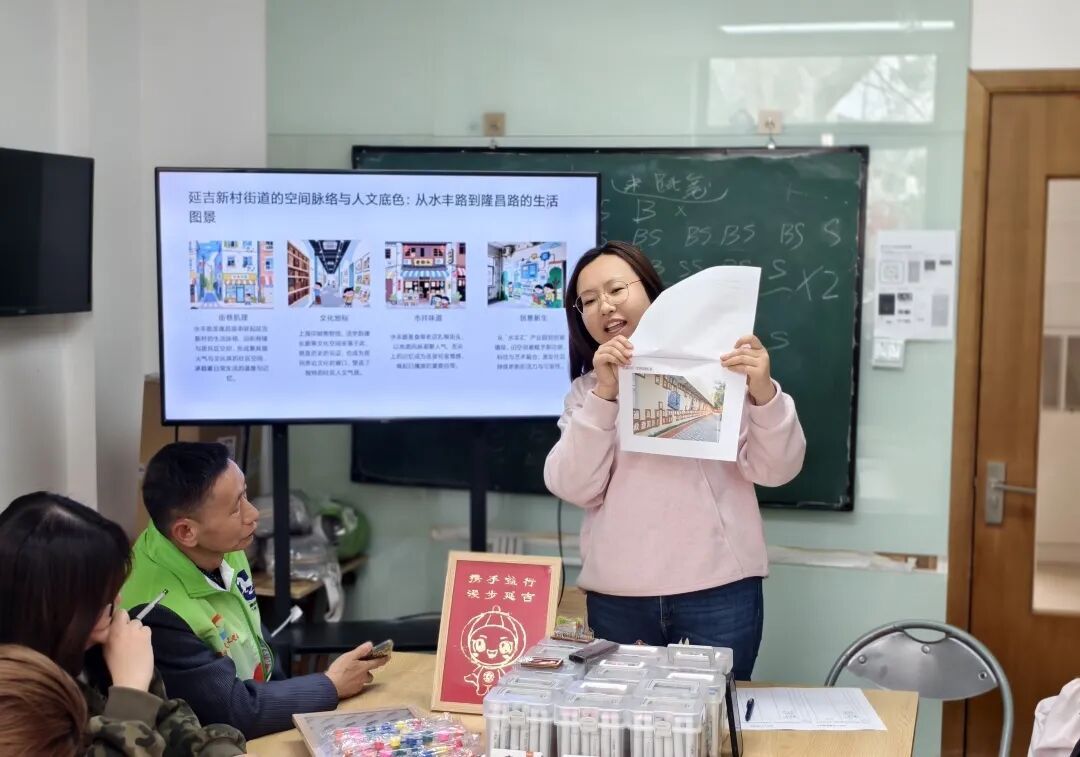 “好文创从来不是凭空捏造,它就藏在我们的日常里。”延吉新村街道社会组织服务中心的培训导师手持实景照片,引导参与者进入状态。当天的活动中,14名学员体验了从“文化挖掘”到“设计落地”的全流程。