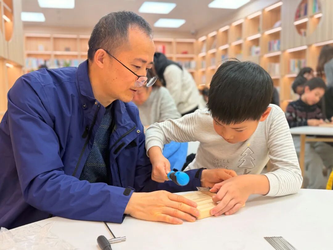 日前,徐汇区斜土街道图书馆内举办了一场“阅见指尖旋律 彩绘春日时光——卡林巴DIY”主题活动。活动将阅读与艺术深度融合,通过乐器科普、手工制作与亲子协作,为社区家庭带来了一场既动脑又动手的文化体验。