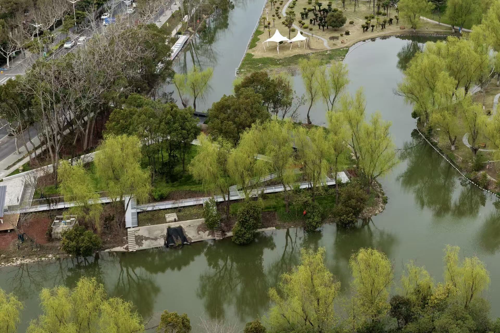 一城青绿,半岸书香。近日,不少居民惊喜发现,在文翔路畔、上海对外经贸大学南侧,新增一处滨水绿地景观,各类景观小品、游览栈道已全部落成,成为周边居民新晋打卡点。