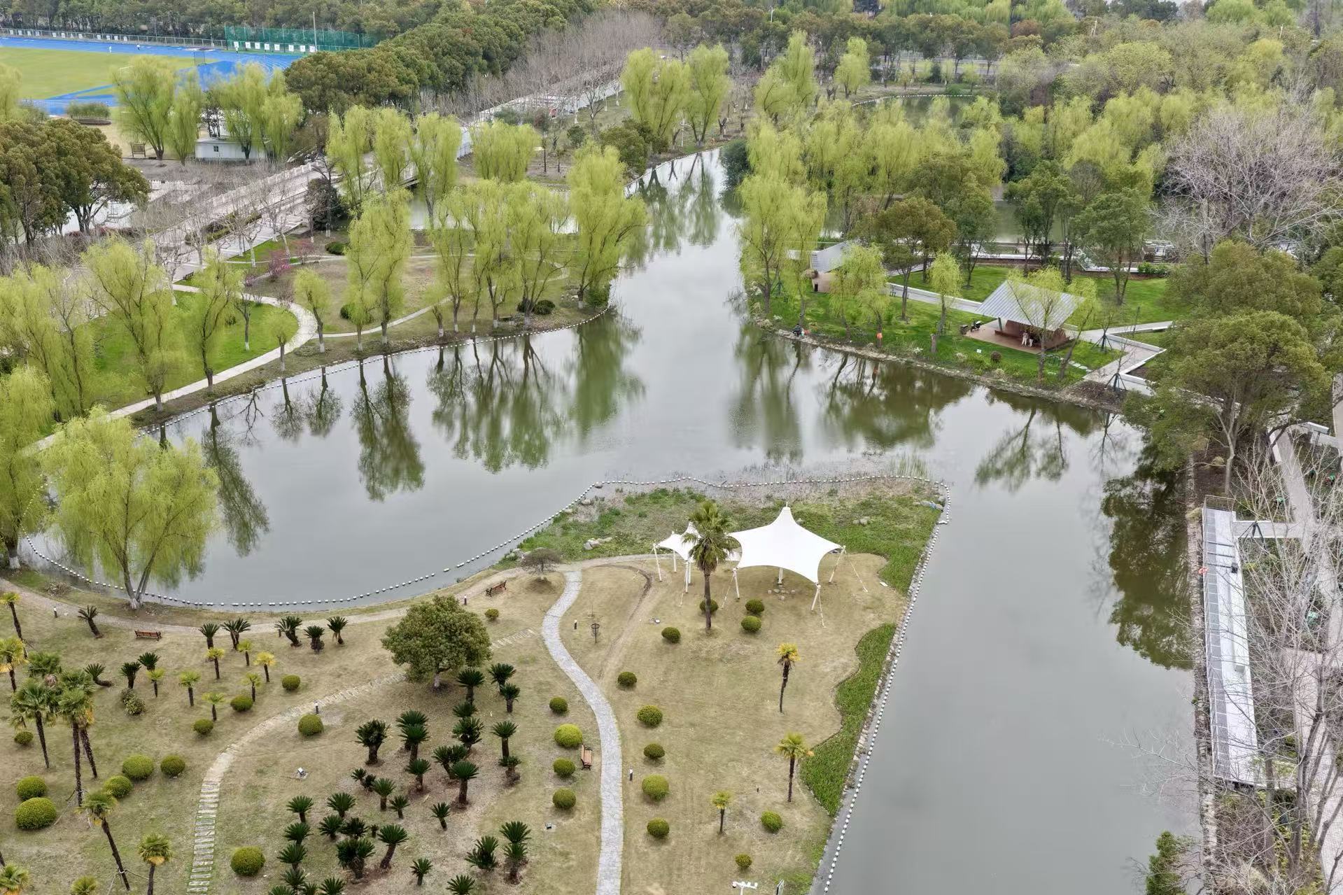 “经浦园”的设计秉持“还绿于民”的初心,紧扣校区、园区、城区一体化发展要求,针对场地原本边界封闭、空间闲置的现状,确立“穿林之径,憩水之滨”的设计主题,通过拆围透绿、空间梳理,打造了一个校社共享的游憩枢纽。上经贸大相关负责人表示,该项目是学校积极落实上级相关政策和要求的具体体现,也是学校实现发挥高校社会服务功能的成效之一。后续学校将与松江区相关部门就安全、卫生、绿植维护等管理工作明确责任,将公园管理好。