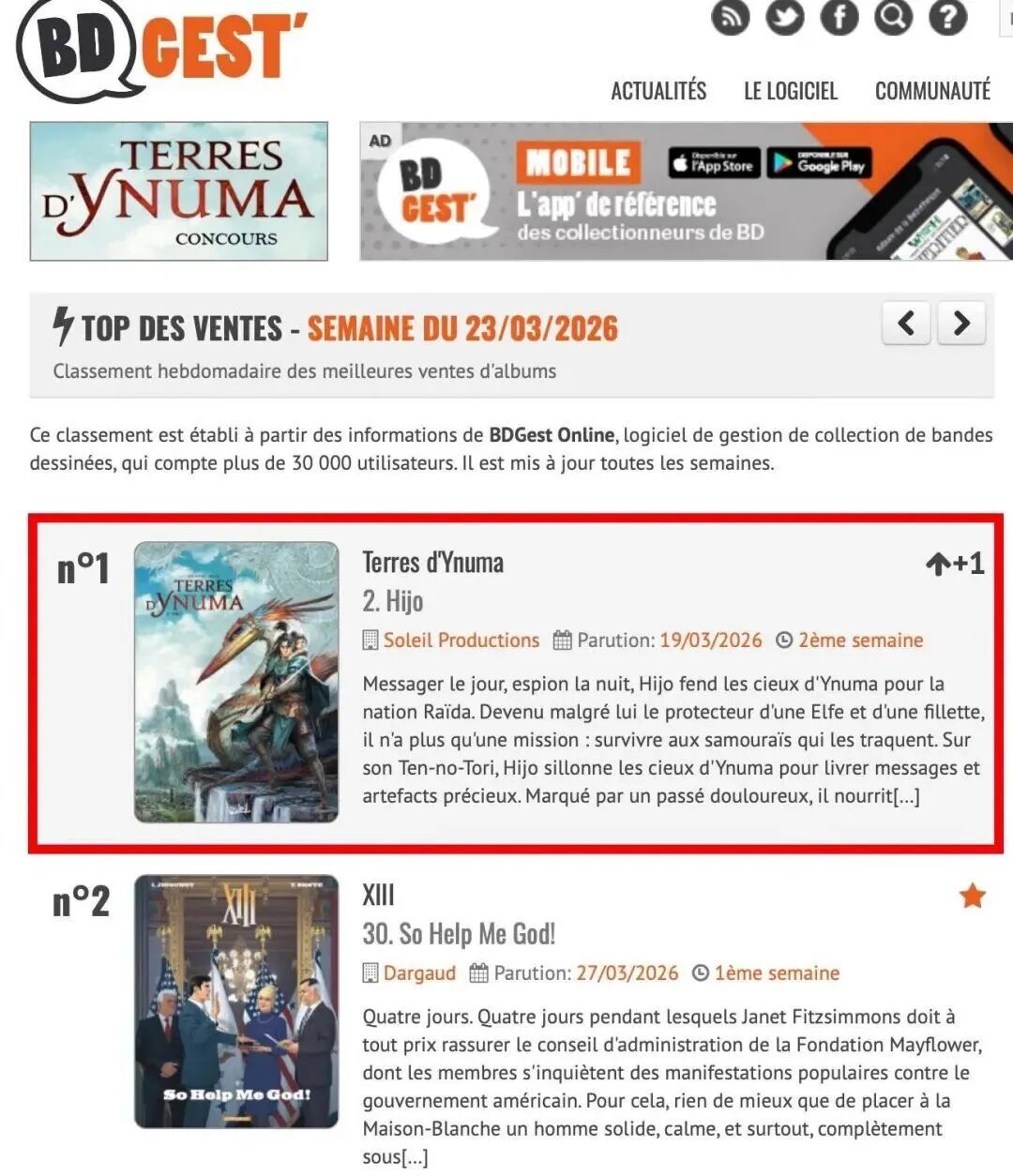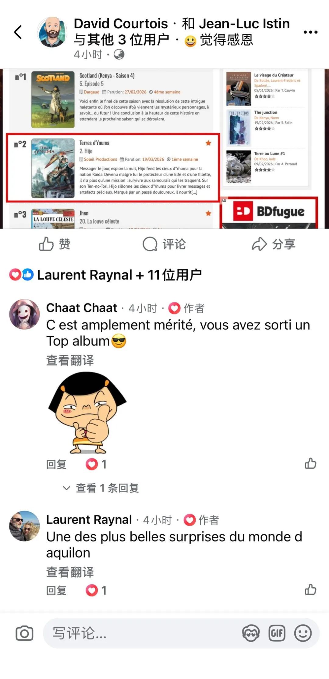 在法语漫画评论主流网站的销售排名