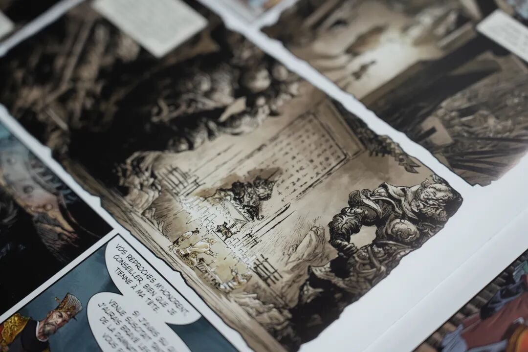 好评如潮的背后是马毅对艺术性的更高追求。他介绍,相较于美国、日本的漫画行业,法国漫画更注重画家的个人风格。在开启项目之前,要与法国编剧进行长时间的沟通,探索风格方向,并进行大量草稿设计。风格确定后,按照每个月5页的产量创作。从设计、分镜草稿、线稿到着色,每个环节都由他一人完成。“创作期间还要保证每一格画面都质量统一、细节丰富,中途还要查阅大量历史资料。因此一年只能出一本书。”马毅说。