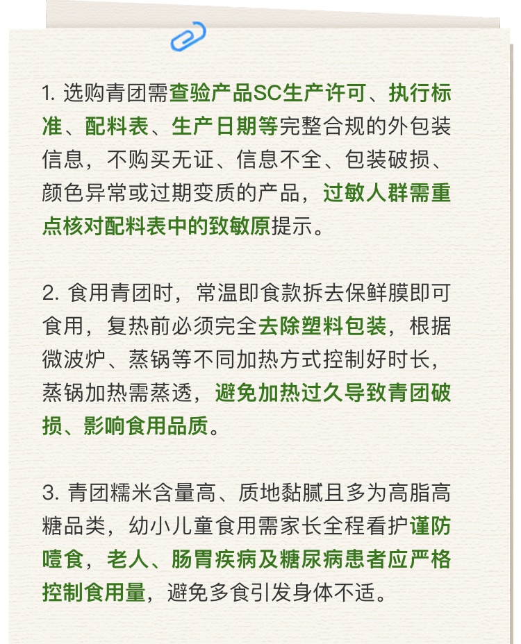 市市场监管局介绍,清明将至,时令美味青团选购时需要注意什么?关于青团的温馨提示一起来看↓