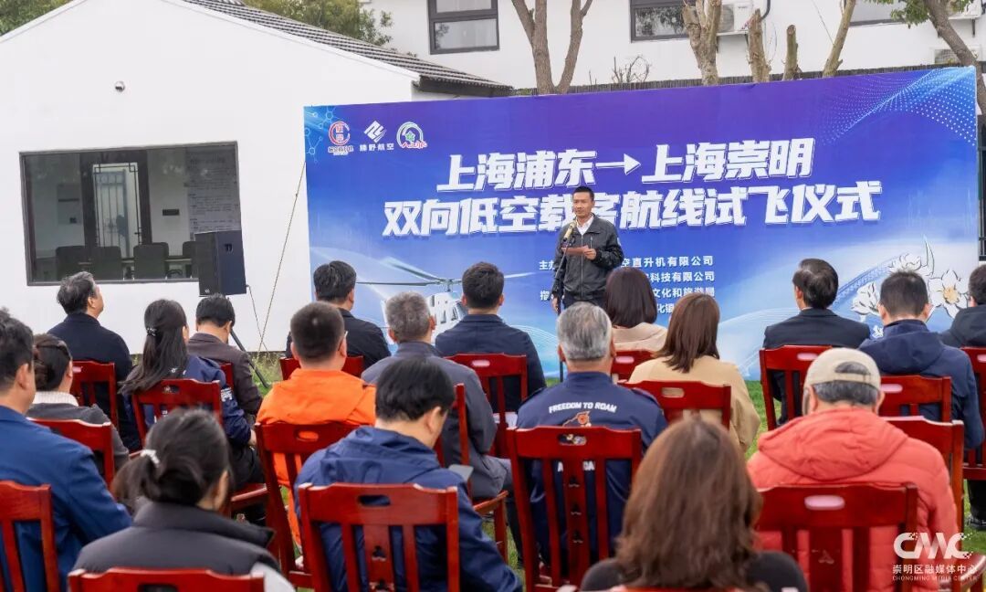 试飞活动现场,相关领导出席并致辞,表示将加速推进崇明区低空经济产业布局,依托航线优势激活区域交通新业态、新动能,助力低空经济这一新质生产力代表产业落地生根。