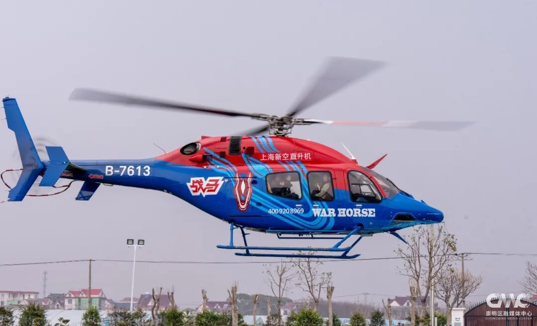 伴随着直升机螺旋桨的轰鸣声,试飞直升机缓缓升空,开启了浦东与崇明的低空便捷联通之旅。