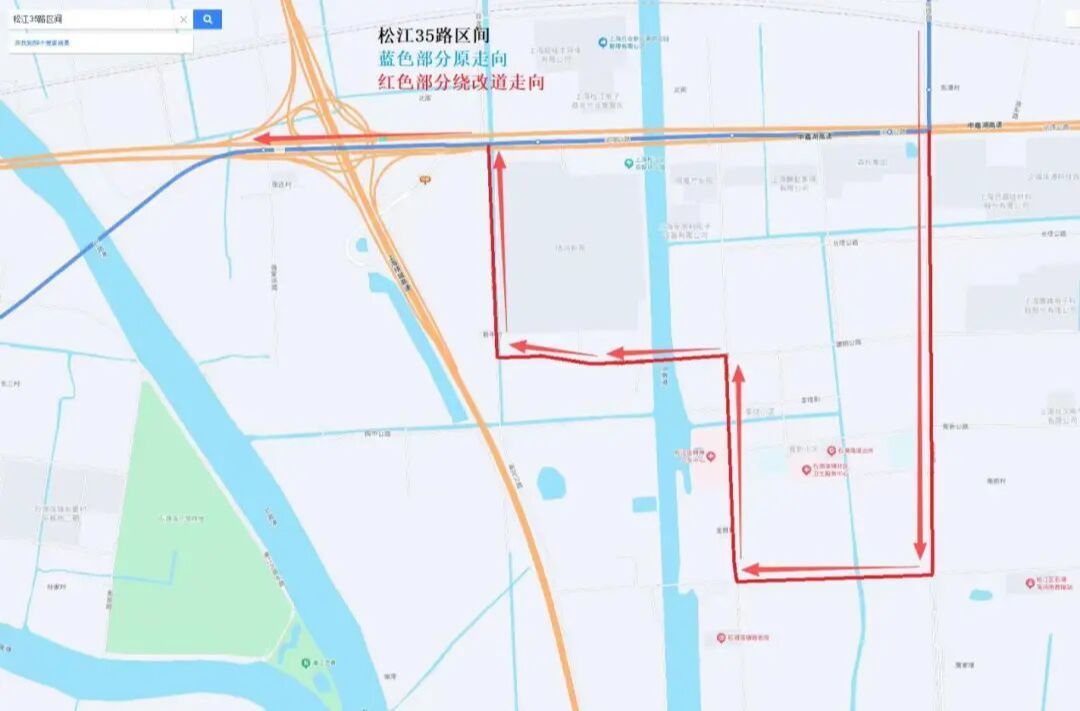 松江35路区间线路调整示意图