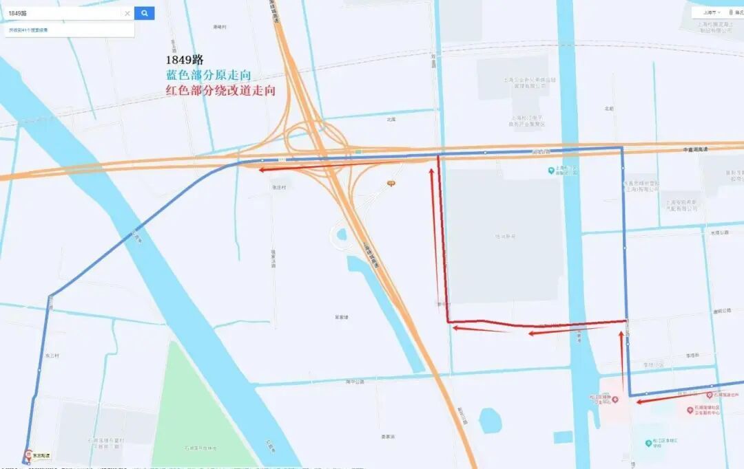 松江1849路线路调整示意图