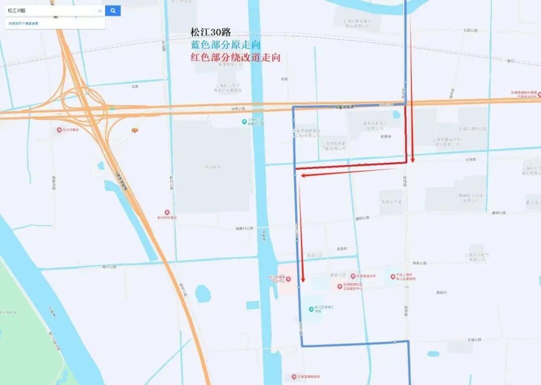 松江30路线路调整示意图