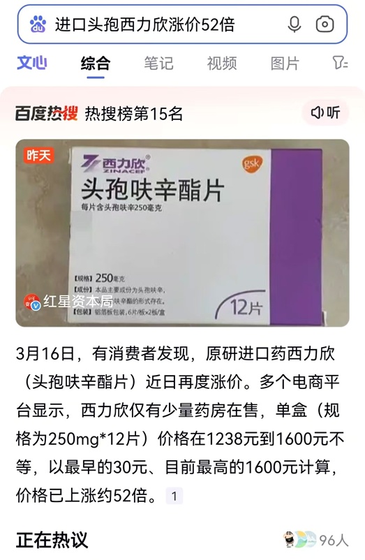 “进口头孢西力欣,从30元暴涨到1600元!”
