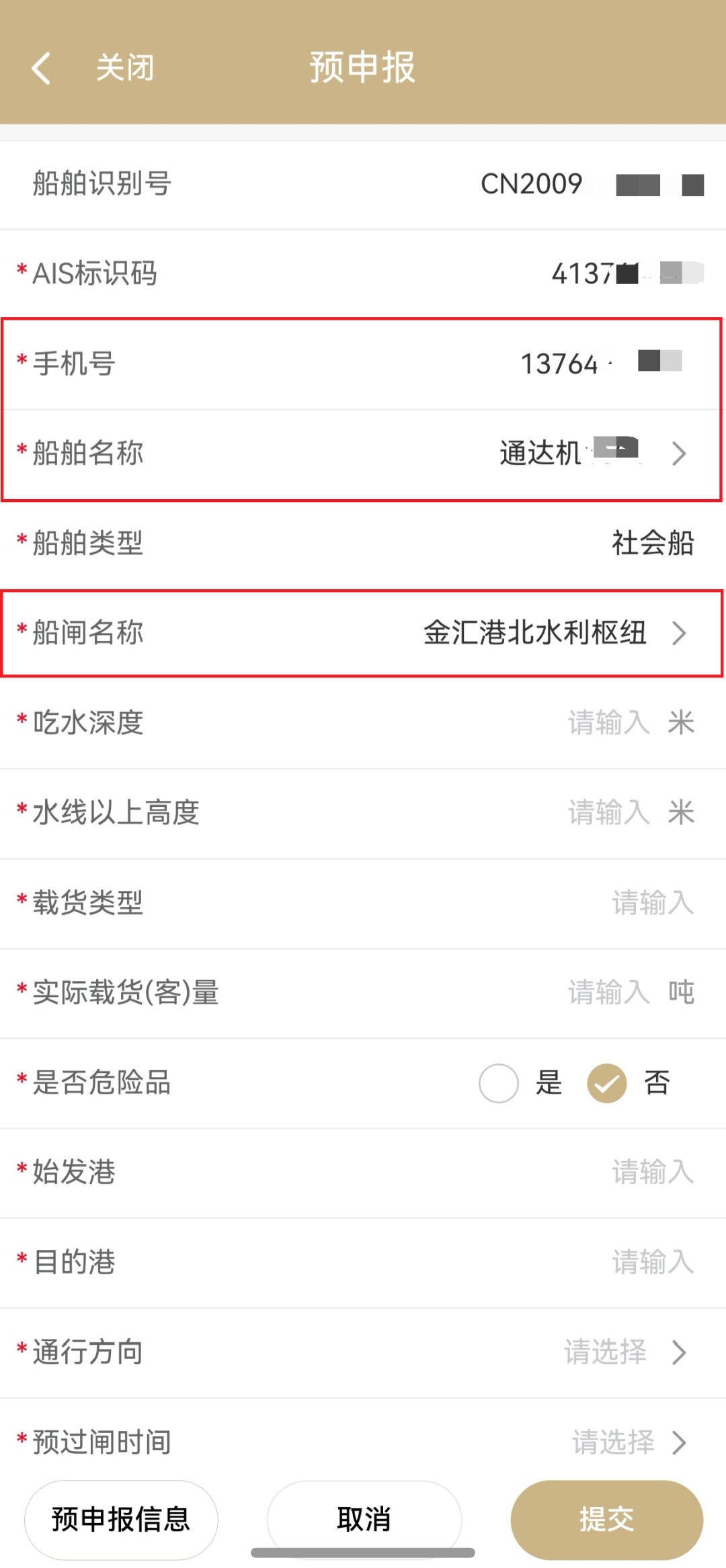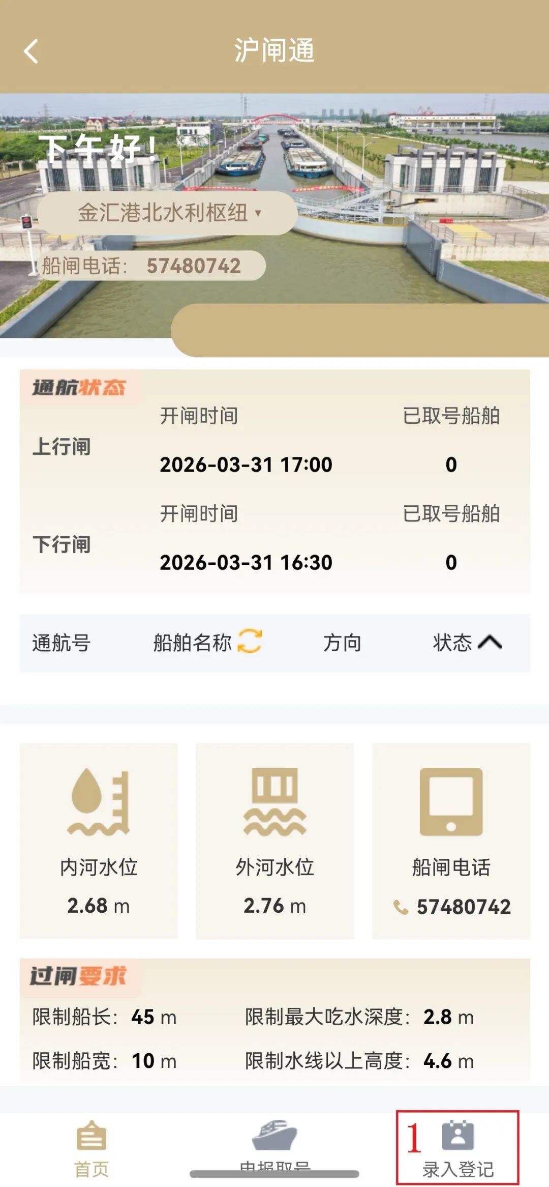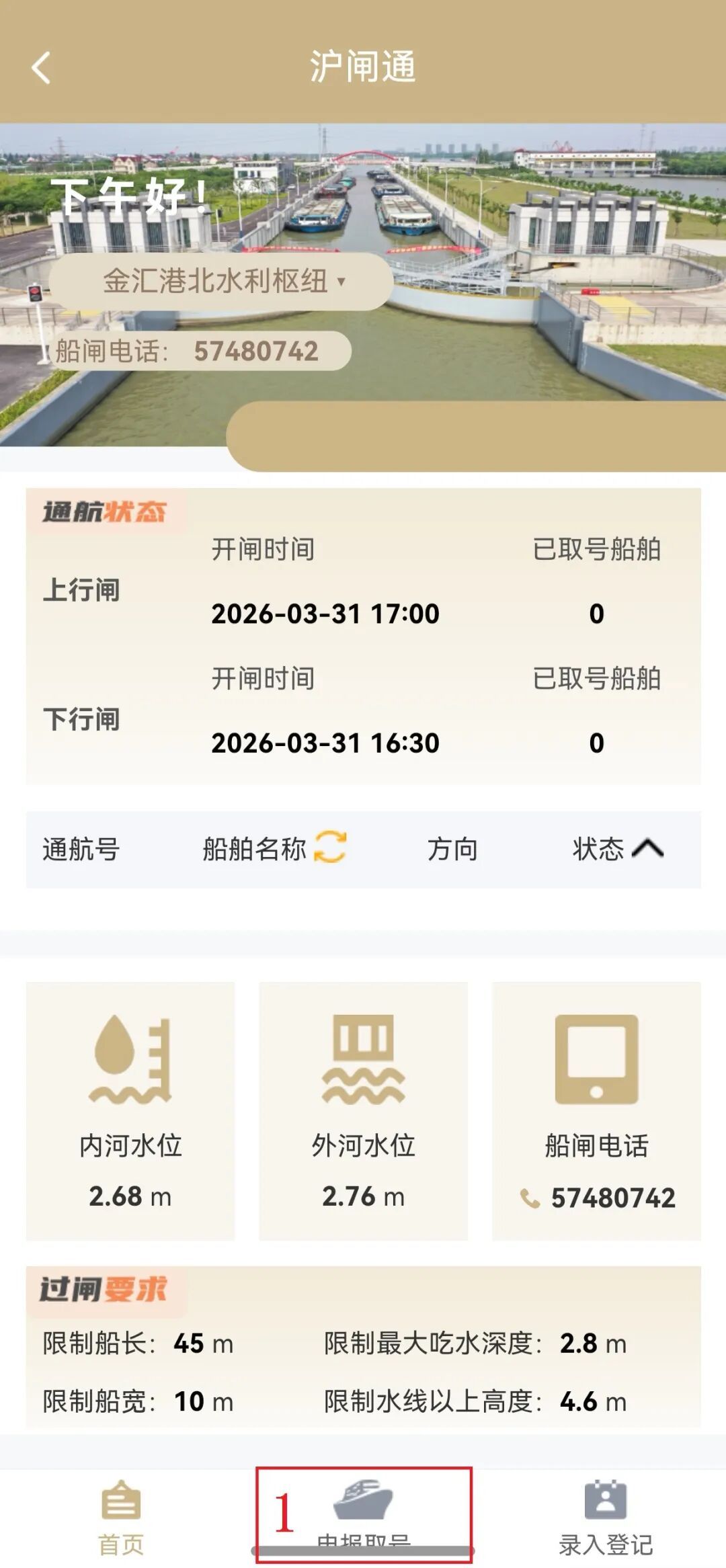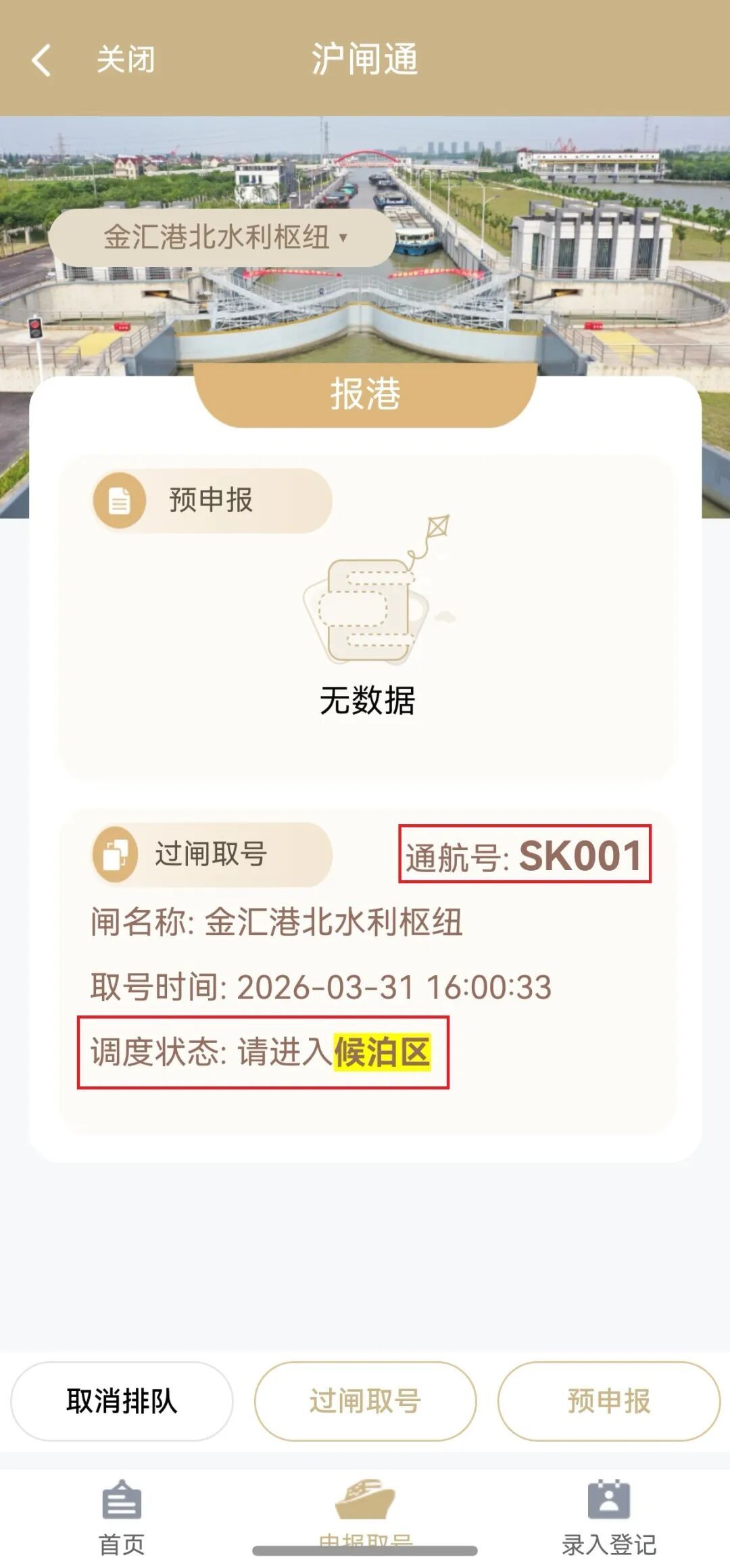 船员朋友请注意! “沪闸通”系统将在 金汇港北水利枢纽启用 操作指南如下: “沪闸通”登录方式 方式一: 通过“随申办市民云”APP登录 方式二: 通过支付宝或微信“随申办”小程序登录 方式三: 通过“上海港航”微信公众号登录 温馨提示 扫码登录“沪闸通” 长按识别二维码 关注“上海港航”微信公众号 初次登记 第一步: 点击“沪闸通”首页右下角“录入登记” 第二步: 绑定手机号 第三步: 点开船舶登记,输入船舶识别号,点击“获取”(如数据加载异常,请人工输入船舶基础信息) 第四步: 上传船检簿相关页及AIS证书 小贴士: (1)同一账号可绑定多艘船舶 (2)船舶基础信息一次录入可重复使用 (3)如信息变更,请更新相关数据 申报取号 01 预申报 ◆ 第一步: 点击“沪闸通”页面下方“申报取号”,点击“预申报” 第二步: 在已登记的船舶中选择计划过闸的船舶和船闸,点击“获取”(如数据加载异常,请人工录入船舶过闸申报信息) ◆ 小贴士: 船舶先预申报,后取号过闸 02 过闸取号 ◉ 第一步: 点击“过闸取号” 第二步: 在已预申报的船舶中选择计划过闸的船舶 第三步: 阅读并勾选《船舶过闸须知》 第四步: 点击“预取号”,等待系统确认后发号 ◉ 小贴士: (1)取号成功后,请注意查收手机短信和小程序页面信息,关注船舶调度状态,避免过号。 (2)因计划变更暂不过闸的,需做取消排队操作。通航号一经取消,无法恢复。 (3)如过号或取消,需重新申报取号后方可过闸。