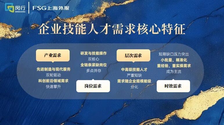 调研报告显示,当前闵行高技能人才需求与产业升级同频共振:先进制造与现代服务双轮牵引,人工智能、集成电路等科创前沿岗位需求激增;研发与实操双核心岗位紧缺,全产业链有迫切的补位需求;中高级技能人才缺口成为企业发展痛点。