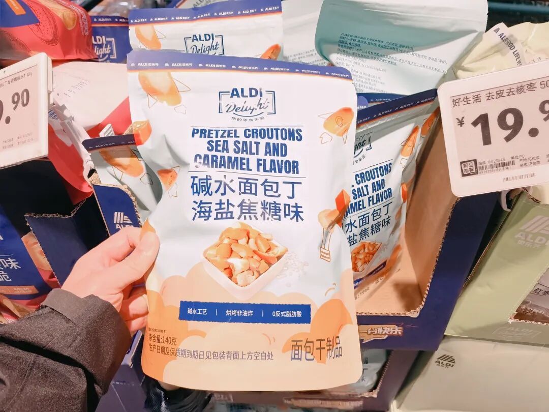 在位于LUONE凯德晶萃广场的奥乐齐门店内,新款好物已被摆放在显眼位置。此次新品种,多款在社交平台火爆的“网红零食”被搬上货架,让消费者无需溢价代购,海盐焦糖碱水面包丁、四川保宁醋风味的老醋蚕豆、国际航线人气款什锦米果等定价均为9.9元,让消费者轻松实现“尝鲜自由”。