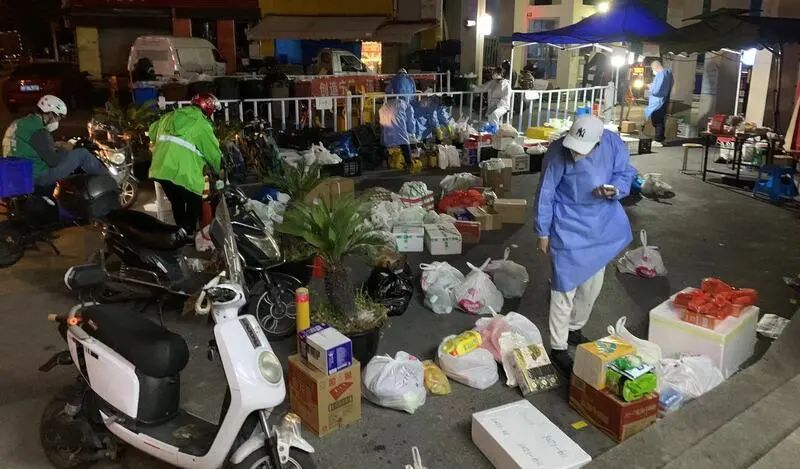 如果我们给了,难保不会有其他居民也跟着出门,下楼来找自己的快递、外卖,这无疑增加了交叉感染的风险。我们只能一遍遍地向居民解释:“你们的菜已经放置在阴凉的地方,会尽快给你们送的。”