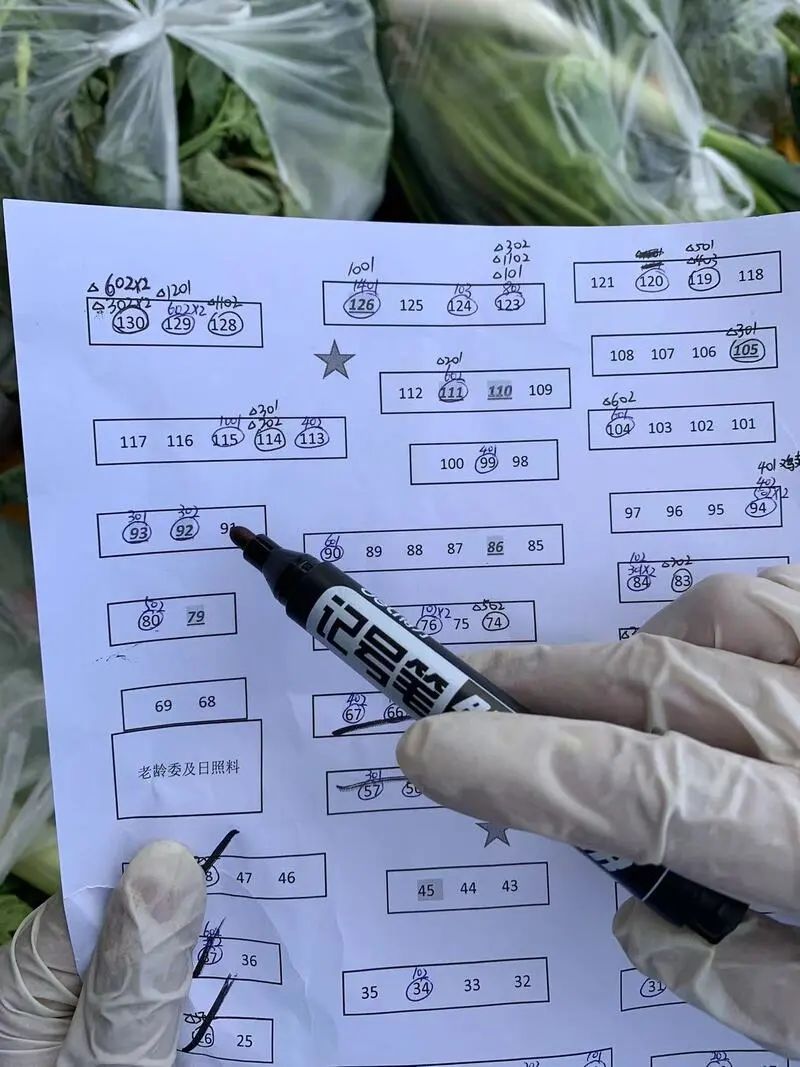 小区有感染者的情况下,除了开展核酸检测时居民们应按楼栋排队前往指定点位,其他时候必须做到足不出户。但依然会有个别居民偷偷跑来大门口:“你帮我找一下几号几零几的好不好,里面是肉和鲜奶,要坏掉了,很早就到了。”