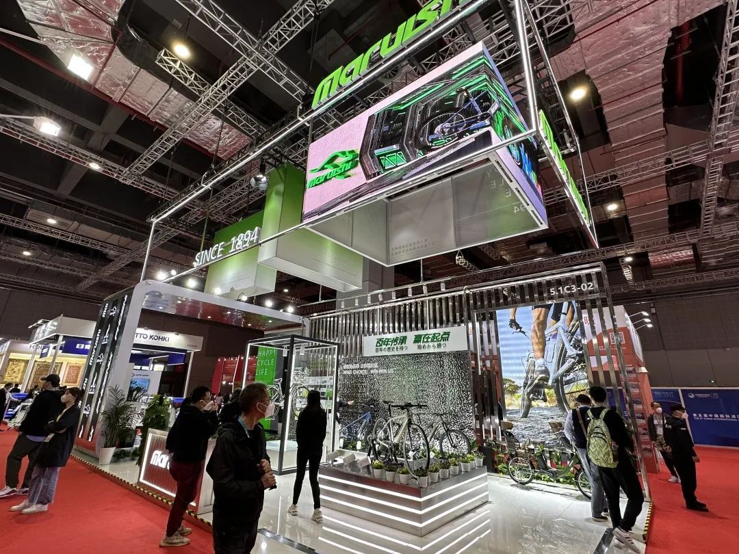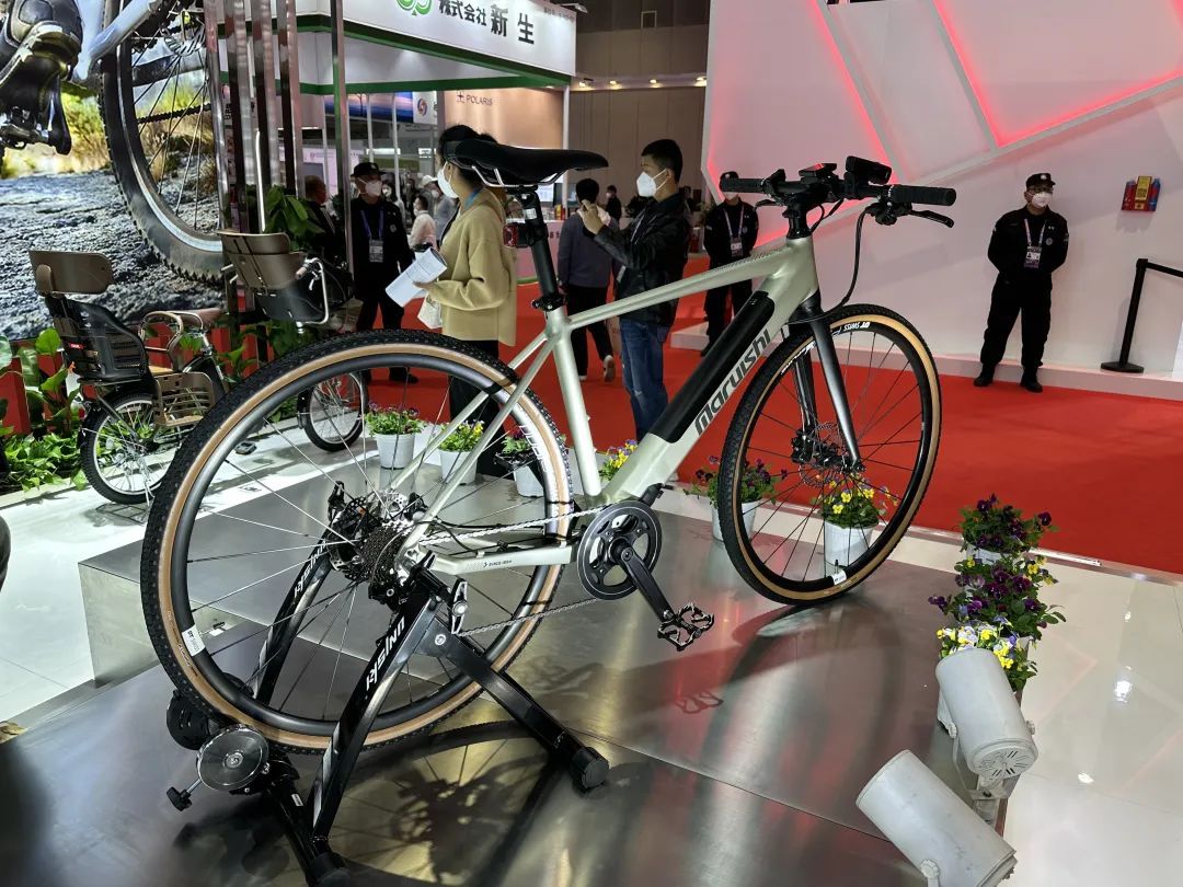 以“城市轻快车”著称的丸石创立于1894年,距今已有128年历史,作为二度参展进博会的“老朋友”,也带来了全新的产品和以科技为主导的新理念。首当其冲的就是fatbike电助力胖胎雪地车,此外还有备受关注的子母车、无链条的丸石经典轴传动车、搭载高配置变速系统的竞赛级软尾山地车……甘霖表示,本届进博会我们一共带来5款车,4辆车都是锂电助力车,其中三款车是特意为进博会而打造的首发新车型,他们就像个聪明的机器人,从旁协助你骑行,负责帮你稳定省力,所以它也有一个绰号叫“智慧单车”。