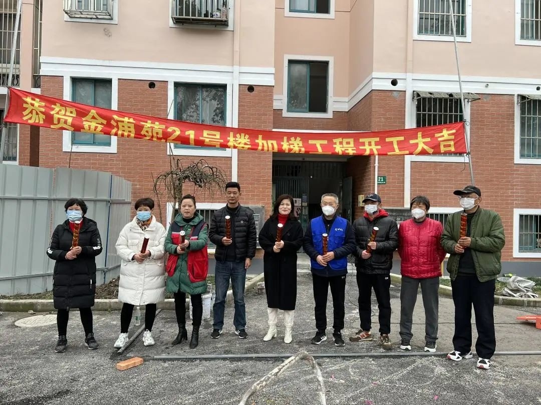 在老旧小区增设电梯,是推动老旧小区改造的一项重要民生工程。近日,金山区山阳镇金浦苑小区21号楼举行了加装电梯开工仪式,居民代表、居委会、业委会、物业及施工方一同参加了这场开工仪式。对于即将动工的加装电梯,大家都充满期待。