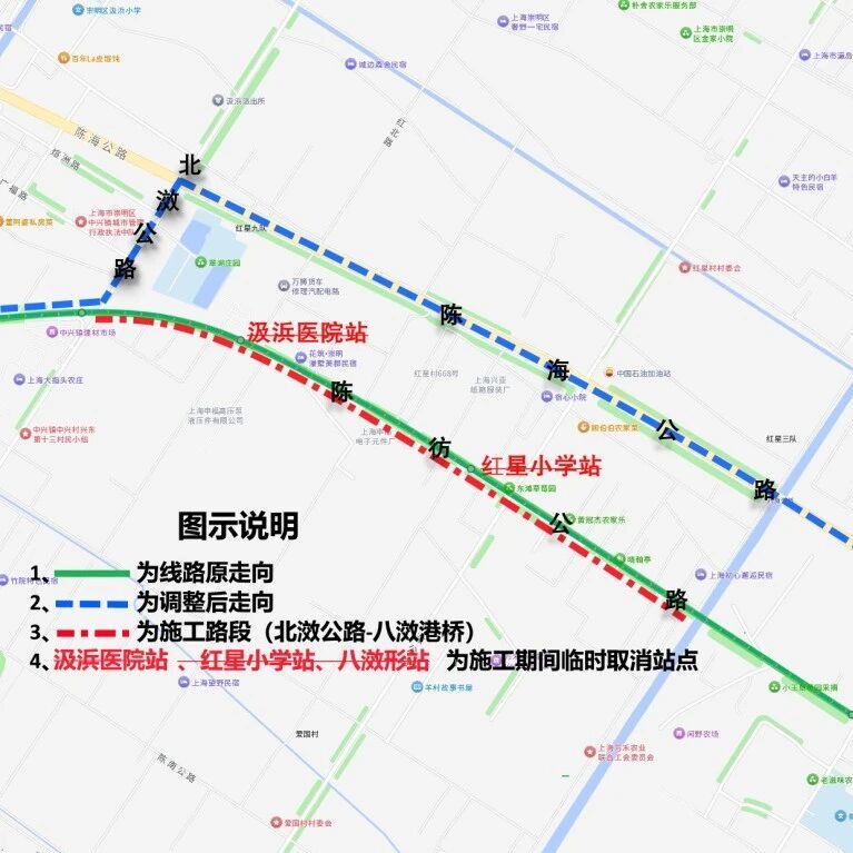 【出行提示】地铁22号线(陈家镇牵引站)电力配套项目施工期间,南裕专线、堡陈专线、崇明乡村1路临时调整