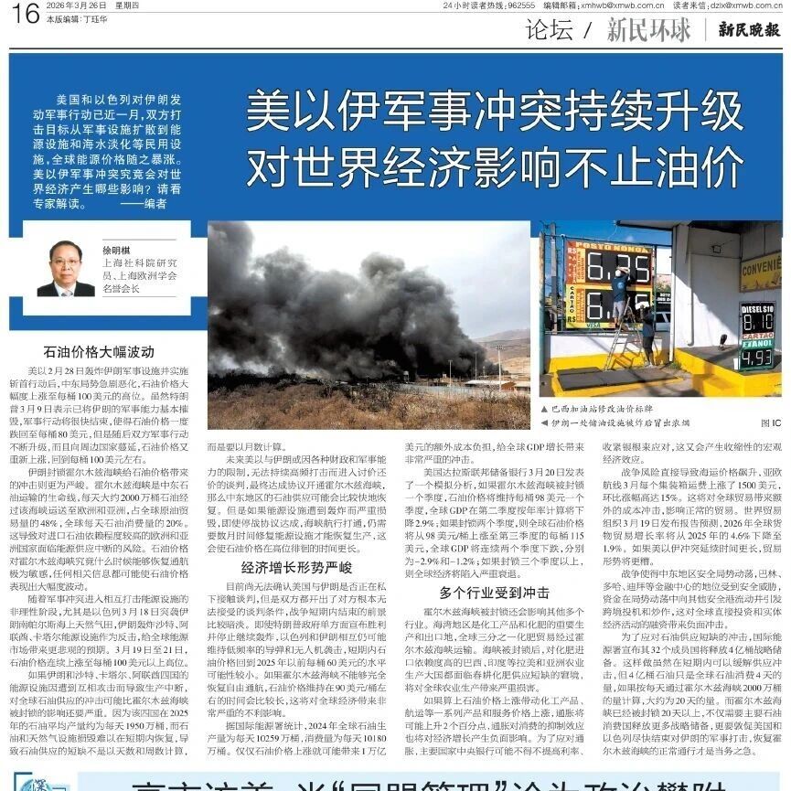 【智库声音】新民晚报 | 徐明棋:美以伊军事冲突持续升级 对世界经济影响不止油价