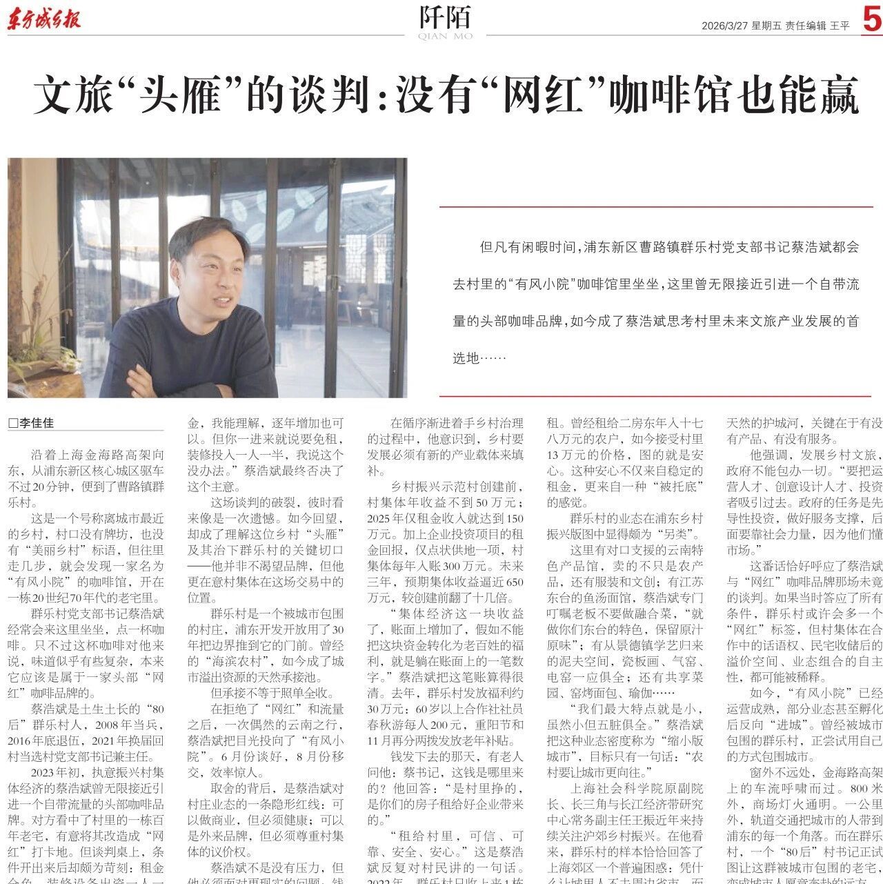 【智库声音】东方城乡报 | 王振等:文旅“头雁”的谈判:没有“网红”咖啡馆也能赢
