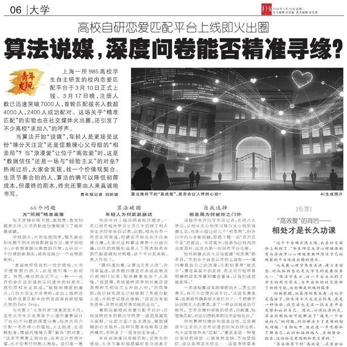 【智库声音】青年报 | 薛泽林等:算法说媒,深度问卷能否精准寻缘?