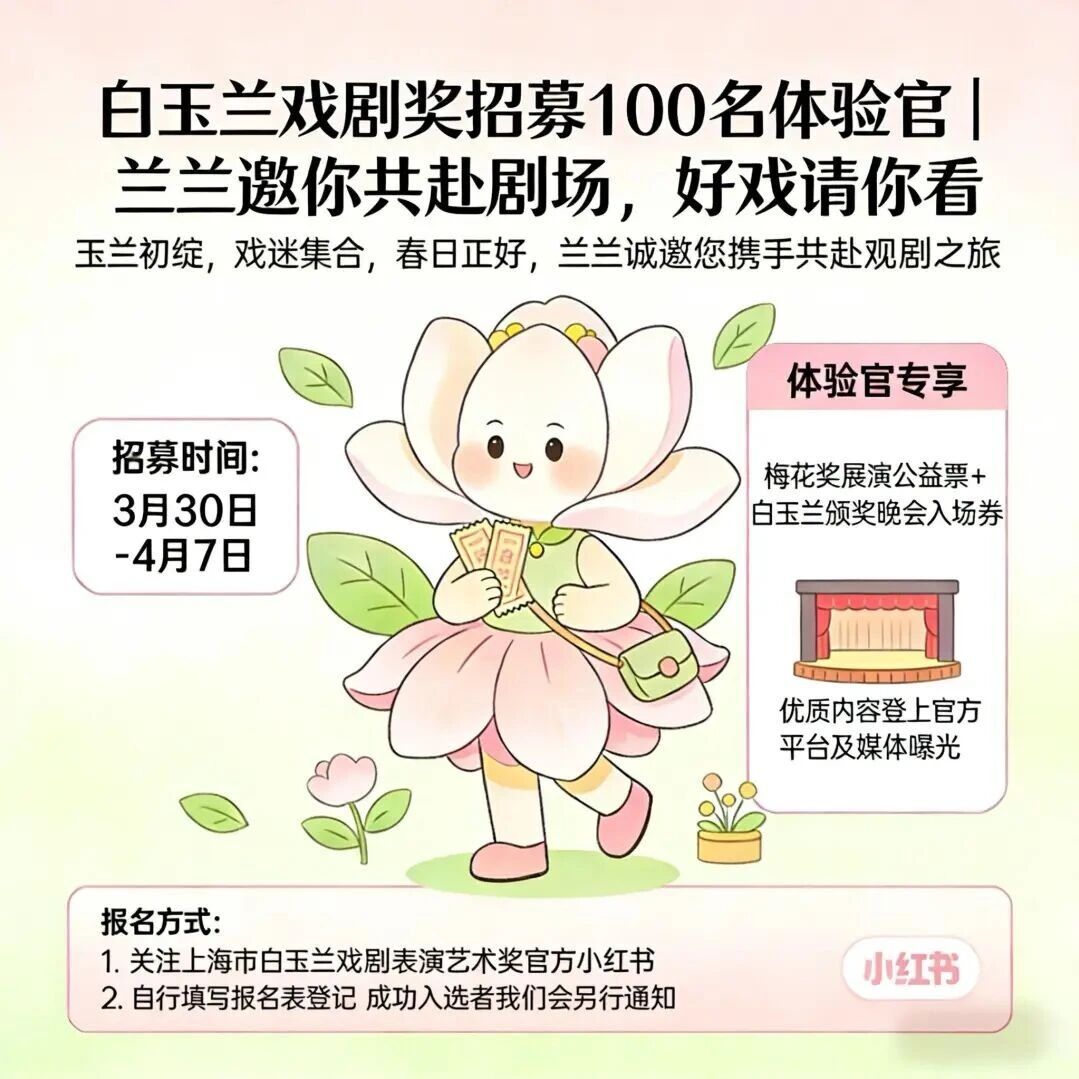 共赴剧场,好剧请你看!白玉兰戏剧奖体验官招募中