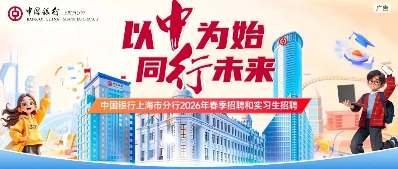 行业招聘丨中国银行上海市分行2026年春季招聘和实习生招聘同步启动!