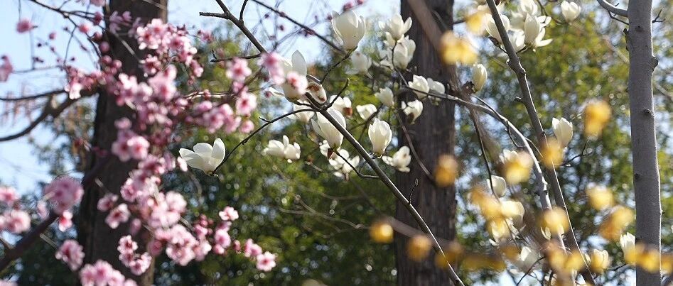 一边是冬的余韵,一边是春的序曲:真如公园蜡梅与白玉兰“跨季同框”